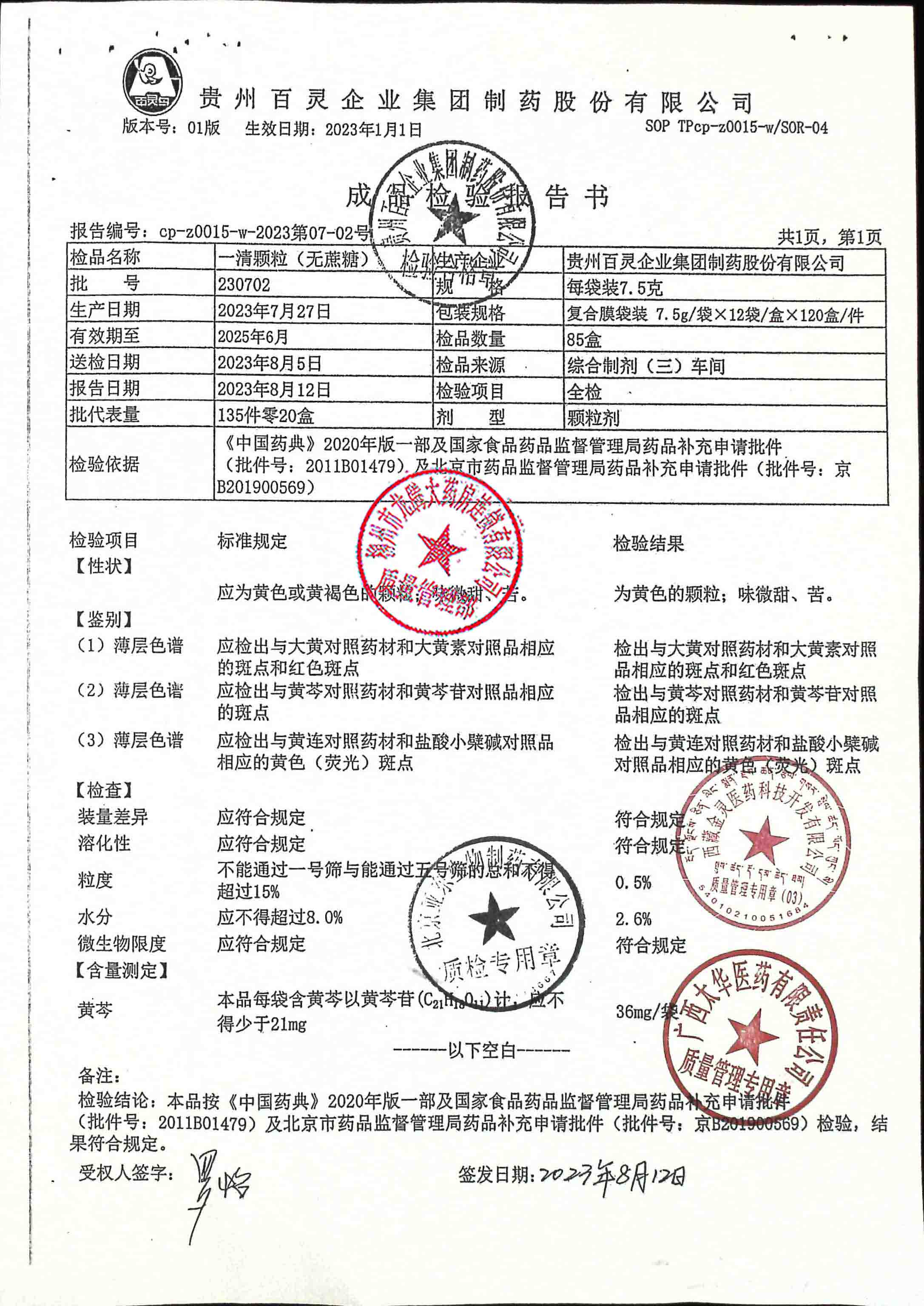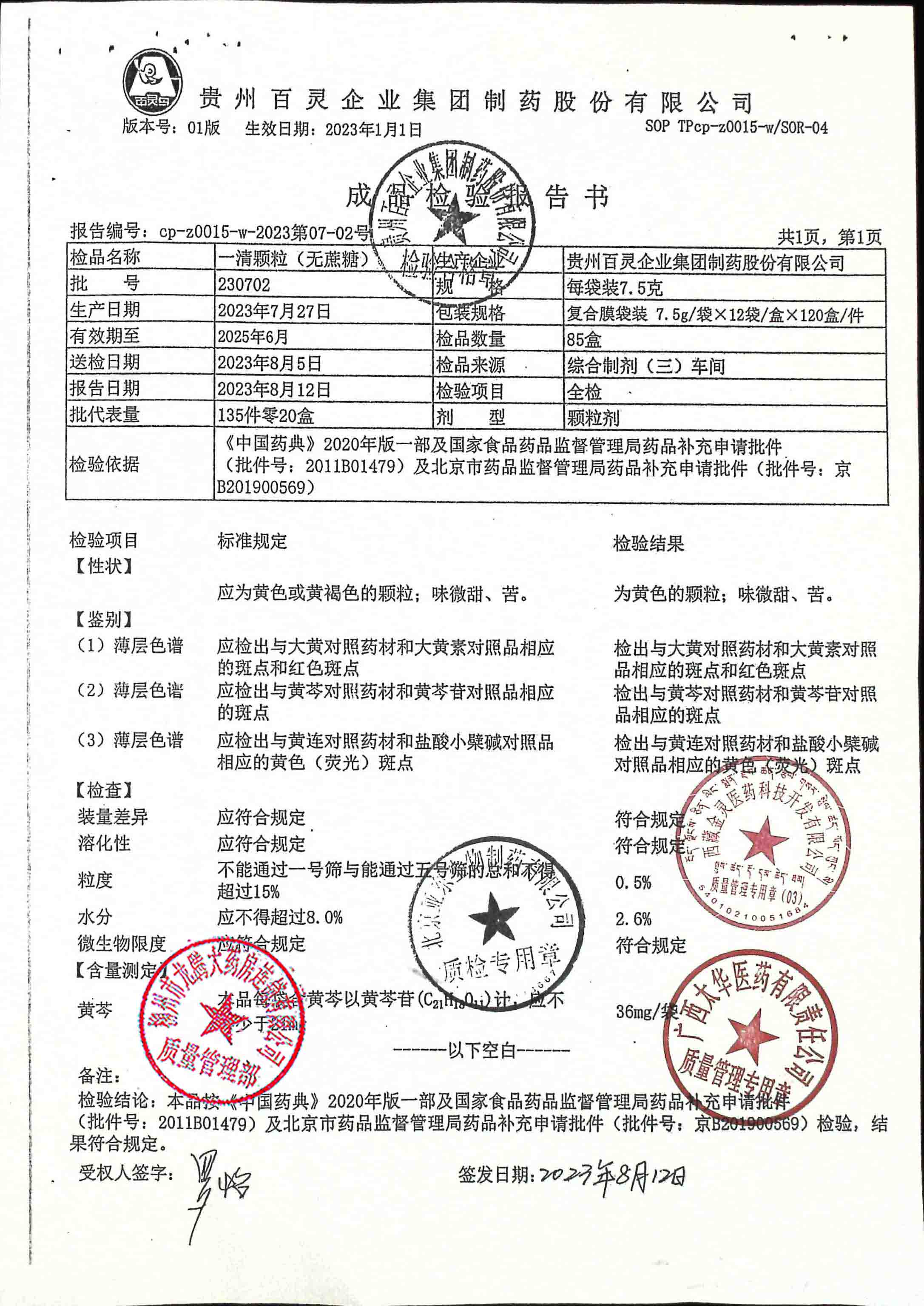 一清颗粒(无蔗糖)230702